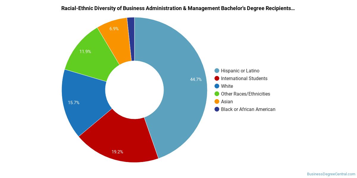 Prospective students may be interested in knowing that this school graduates 28% more racial-ethnic minorities in its business administration bachelor's program than the national average.*