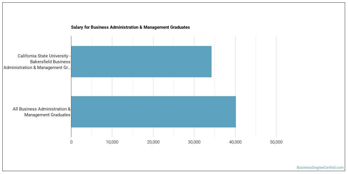 The median salary of business administration students who receive their bachelor's degree at CSUB is $33,538. This is less than $41,334, which is the national average of all business administration majors in the nation who earn bachelor's degrees.