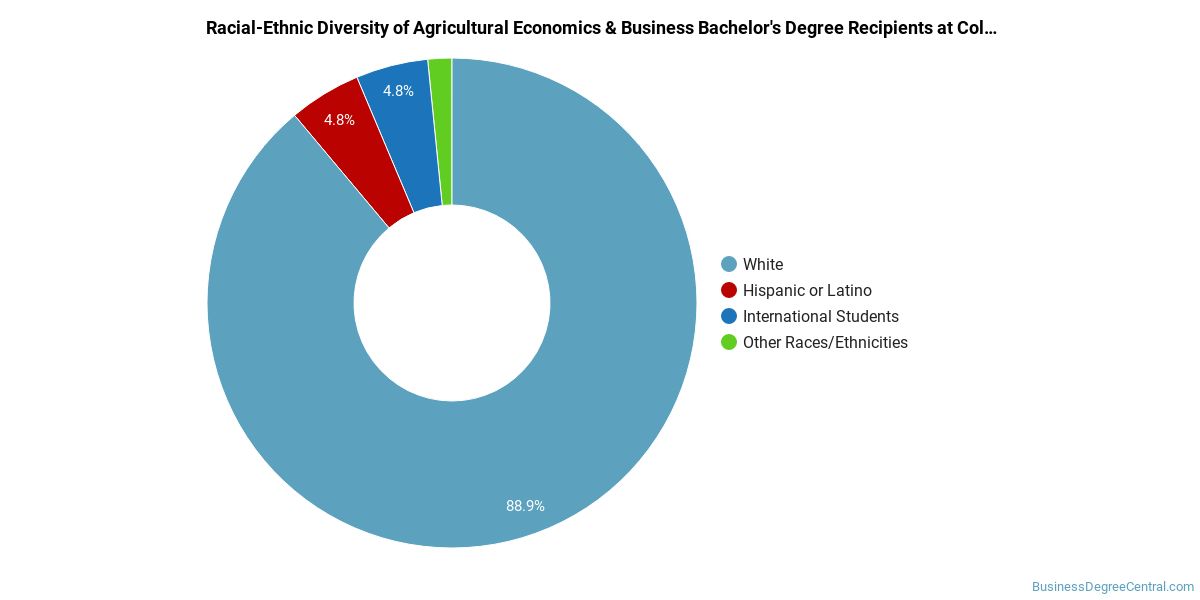 About 83% of those who receive a bachelor's degree in agricultural business at Colorado State are white. This is above average for this degree on the nationwide level.