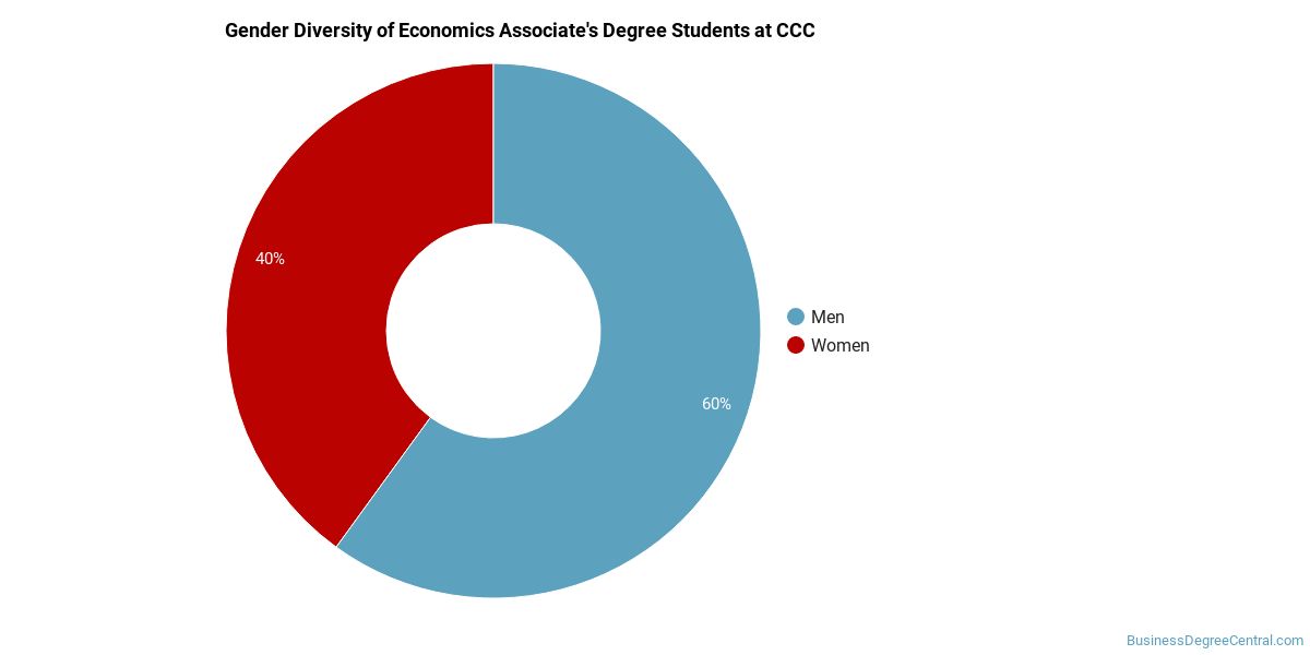 CCC does a better job with serving racial-ethnic minorities than the typical school does. Its associate's program in economics graduates 44% more racial-ethnic minorities than the nationwide average.*