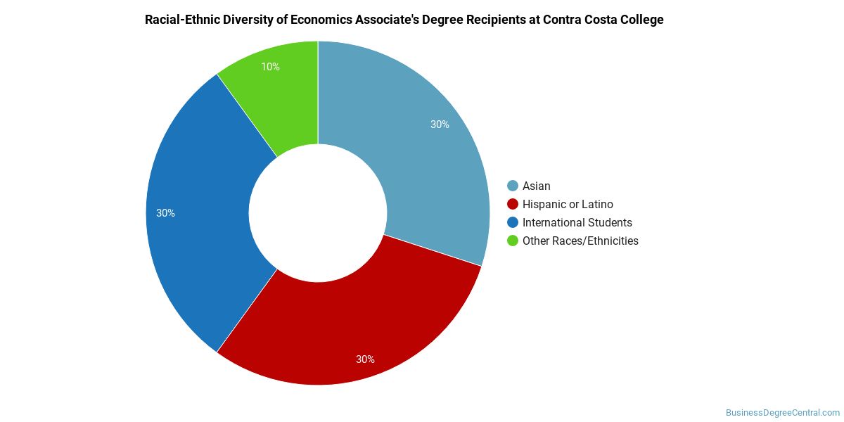 The following table and chart show the race/ethnicity for students who recently graduated from Contra Costa College with a associate's in economics.