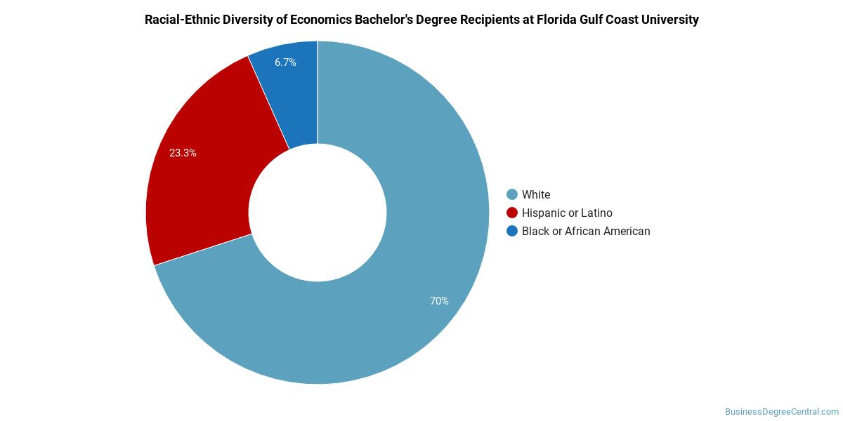 FGCU is located in Fort Myers, Florida and approximately 15,358 students attend the school each year. In the 2020-2021 academic year, 21 students received a bachelor's degree in economics from FGCU.