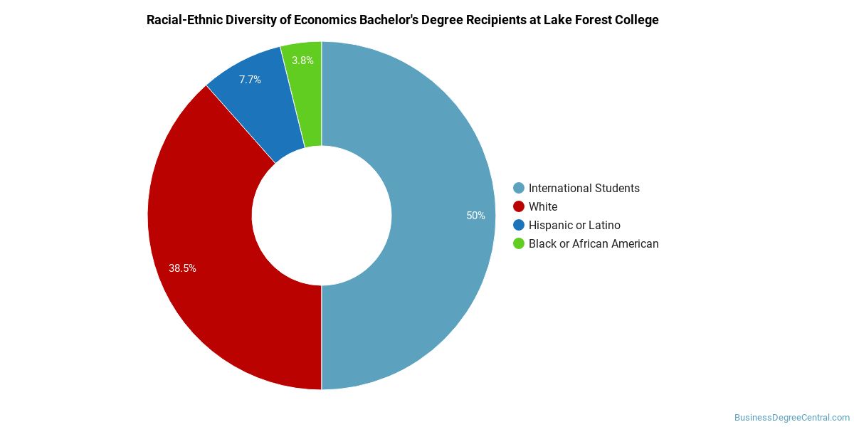 The median salary of economics students who receive their bachelor's degree at Lake Forest is $58,782. This is great news for graduates of the program, since this figure is 28% higher than the national average of $45,868 for all economics bachelor's degree recipients.