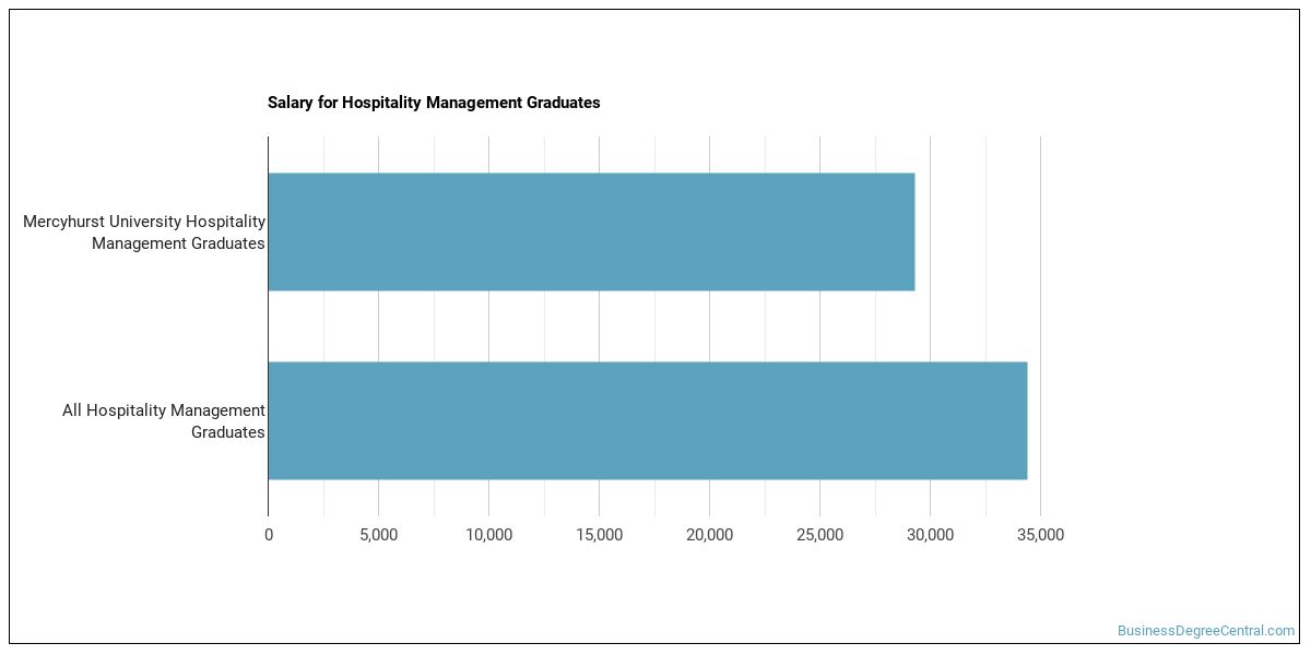 The median salary of hospitality students who receive their bachelor's degree at Mercyhurst is $33,553. Unfortunately, this is lower than the national average of $36,364 for all hospitality students.