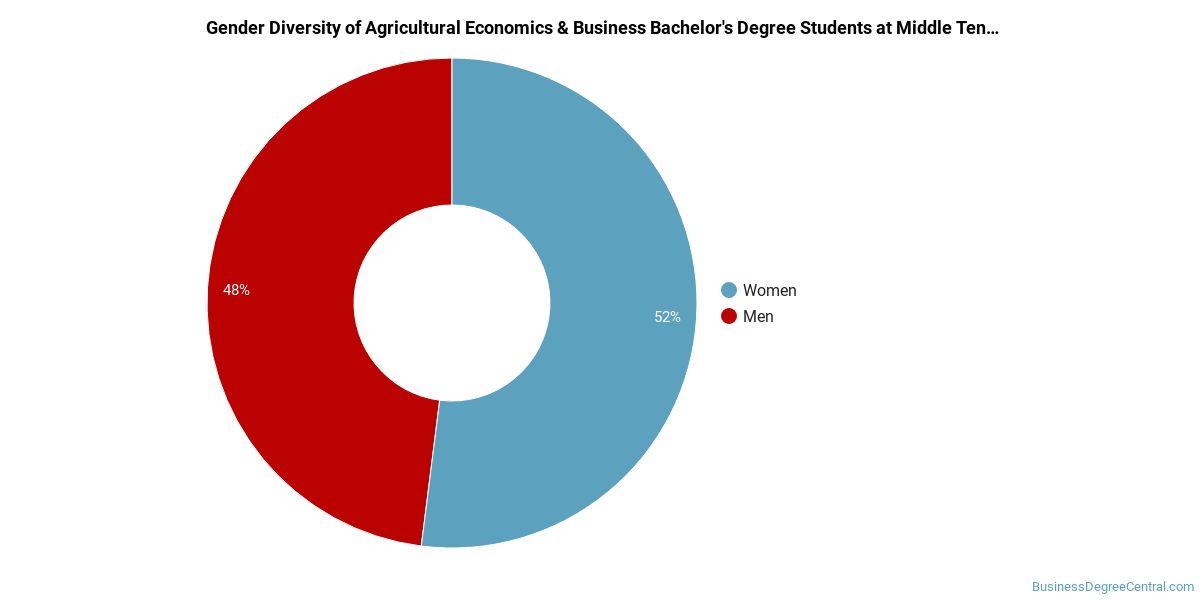 About 85% of those who receive a bachelor's degree in agricultural business at Middle Tennessee State University are white. This is above average for this degree on the nationwide level.
