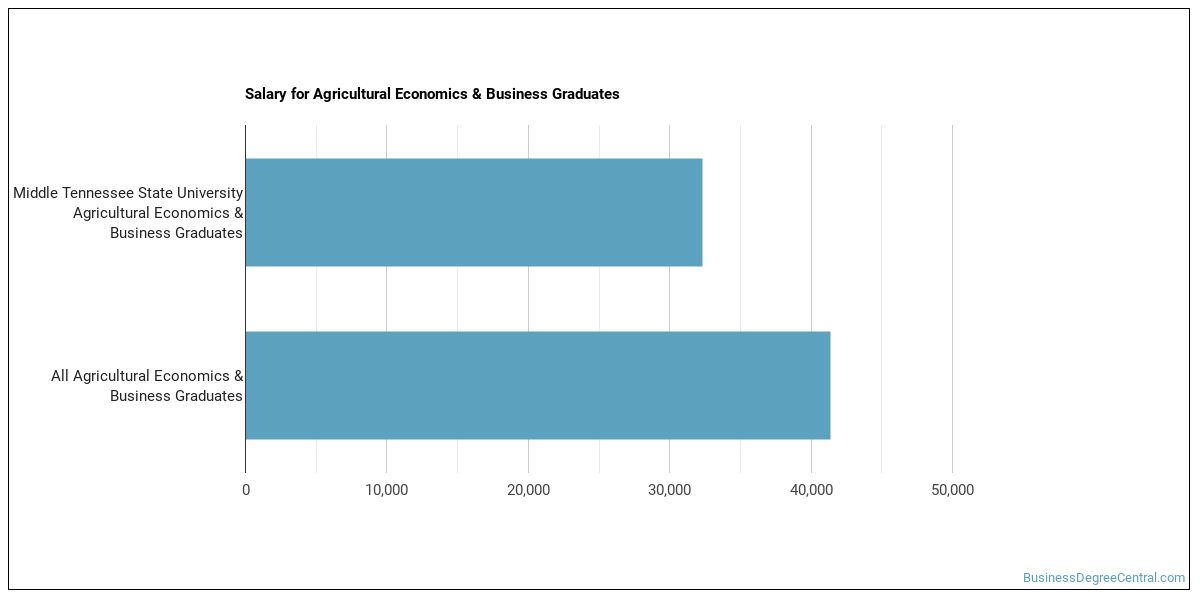 The median salary of agricultural business students who receive their bachelor's degree at Middle Tennessee State University is $36,527. Unfortunately, this is lower than the national average of $43,092 for all agricultural business students.