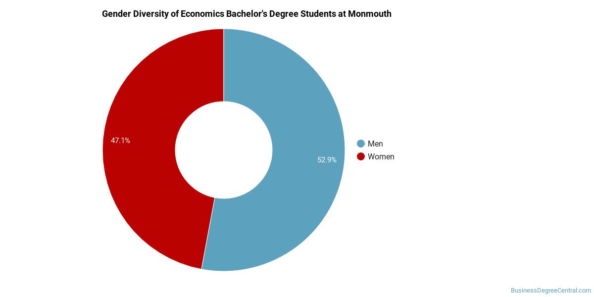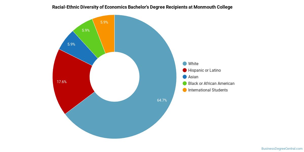 About 85% of those who receive a bachelor's degree in economics at Monmouth are white. This is above average for this degree on the nationwide level.