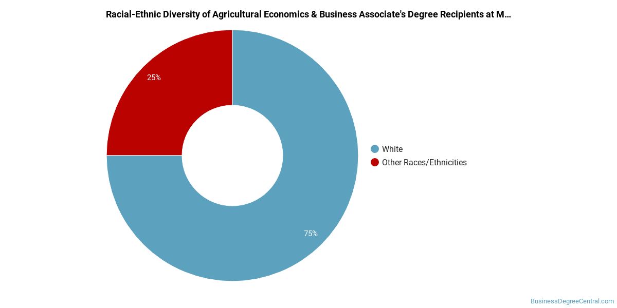 The majority of those who receive an associate's degree in agricultural business at Montana State University - Northern are white. Around 86% fell into this category, which is below average for this degree.