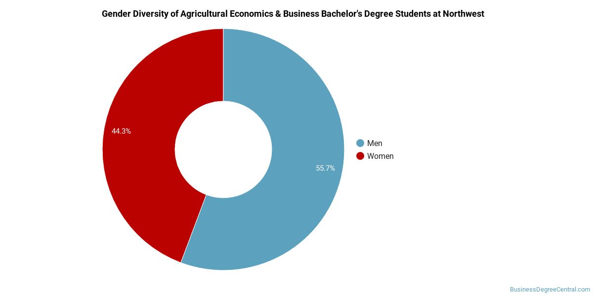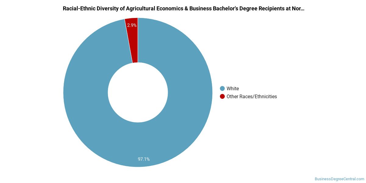 About 97% of those who receive a bachelor's degree in agricultural business at Northwest are white. This is above average for this degree on the nationwide level.