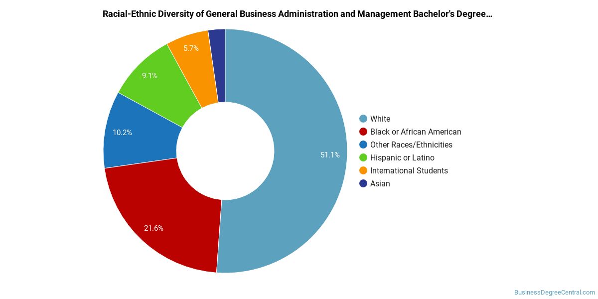Prospective students may be interested in knowing that this school graduates 8% more racial-ethnic minorities in its business administration bachelor's program than the national average.*