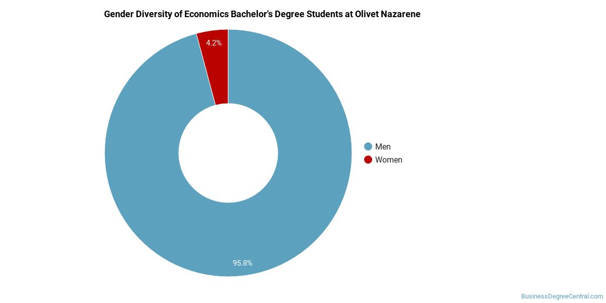 About 79% of those who receive a bachelor's degree in economics at Olivet Nazarene are white. This is above average for this degree on the nationwide level.