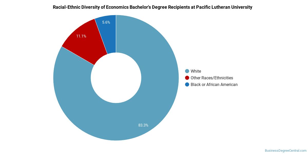 About 80% of those who receive a bachelor's degree in economics at PLU are white. This is above average for this degree on the nationwide level.