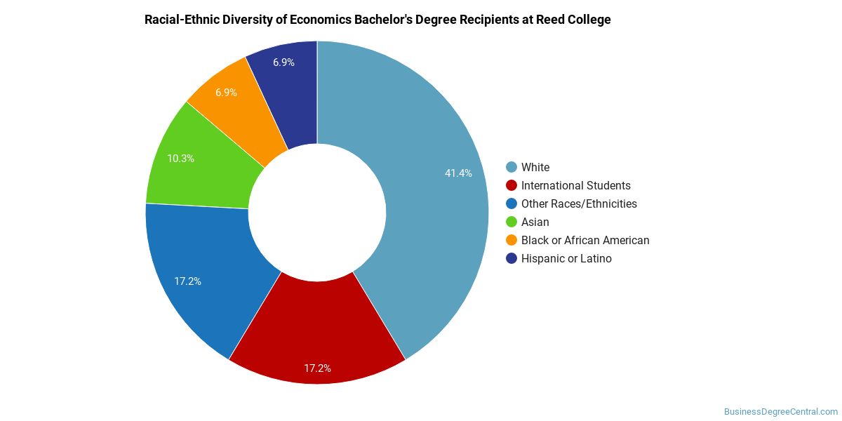 About 60% of those who receive a bachelor's degree in economics at Reed are white. This is above average for this degree on the nationwide level.