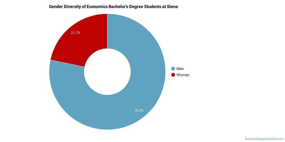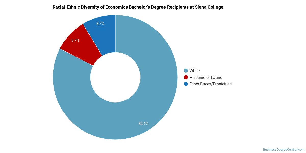 About 77% of those who receive a bachelor's degree in economics at Siena are white. This is above average for this degree on the nationwide level.