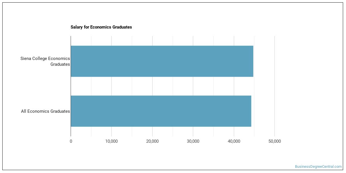 The median salary of economics students who receive their bachelor's degree at Siena is $47,100. This is 3% higher than $45,868, which is the national average for all economics bachelor's degree recipients.
