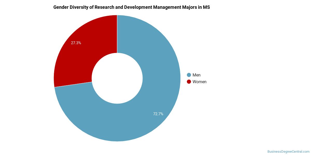 In Mississippi, a research and development management major is more popular with men than with women.