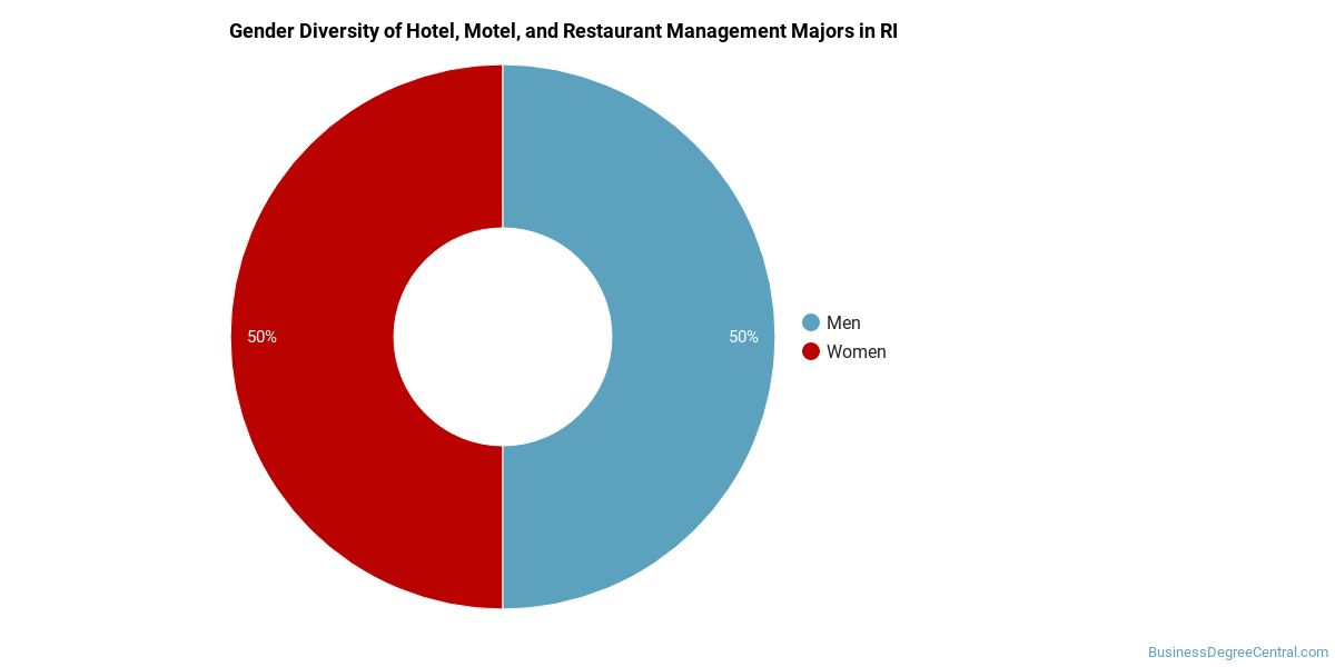 In Rhode Island, a hotel, motel, and restaurant management major is equally popular with women and men.