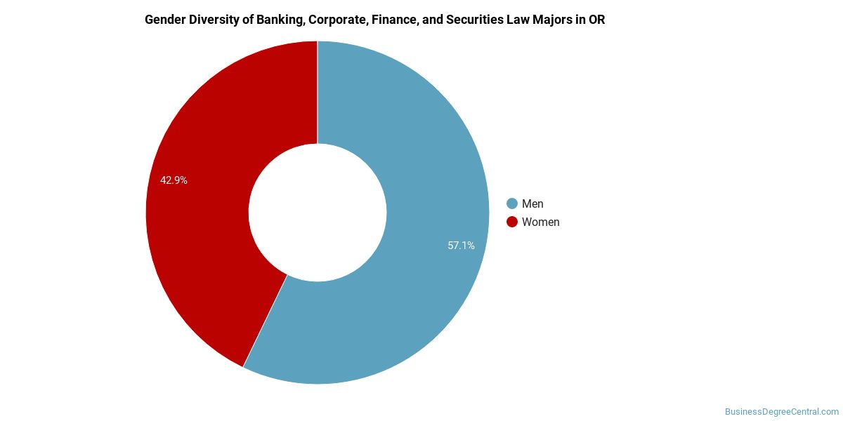 In Oregon, a banking, corporate, finance, and securities law major is more popular with men than with women.