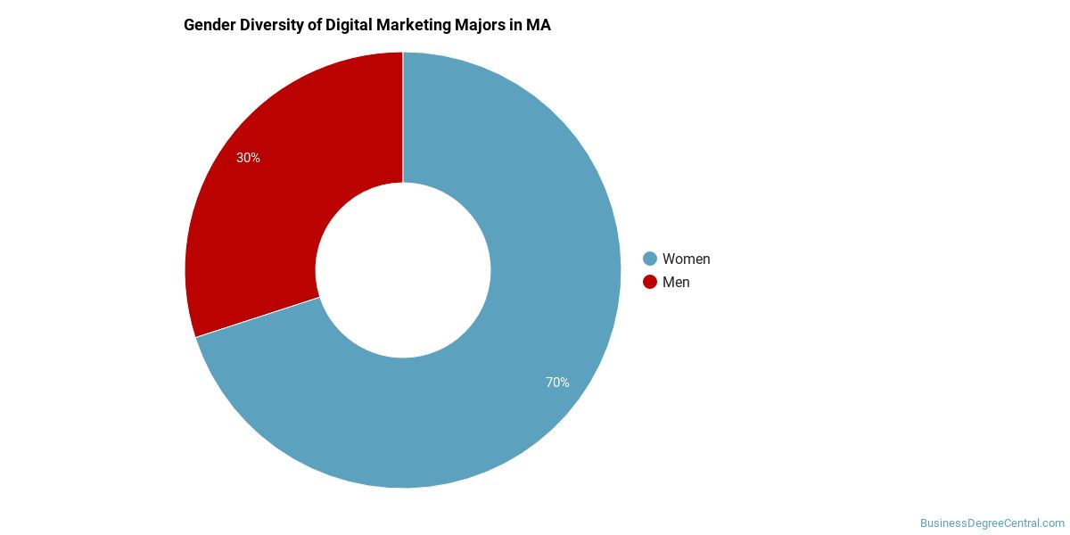 In Massachusetts, a digital marketing major is more popular with women than with men.