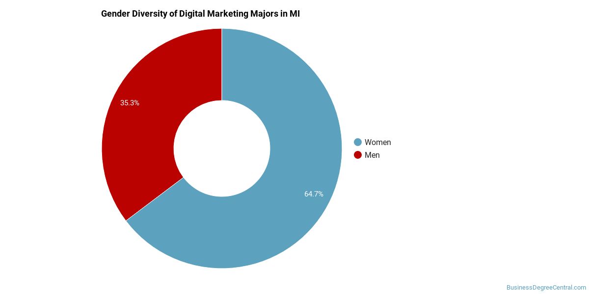 In Michigan, a digital marketing major is more popular with women than with men.