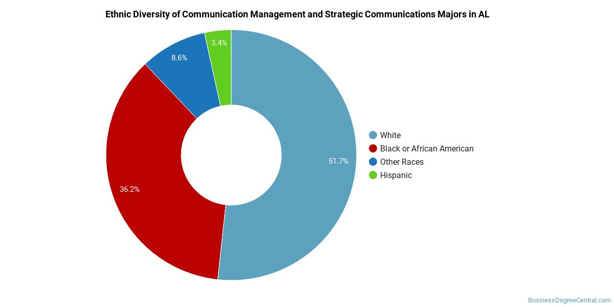The racial distribution of communication management and strategic communications majors in Alabama is as follows: